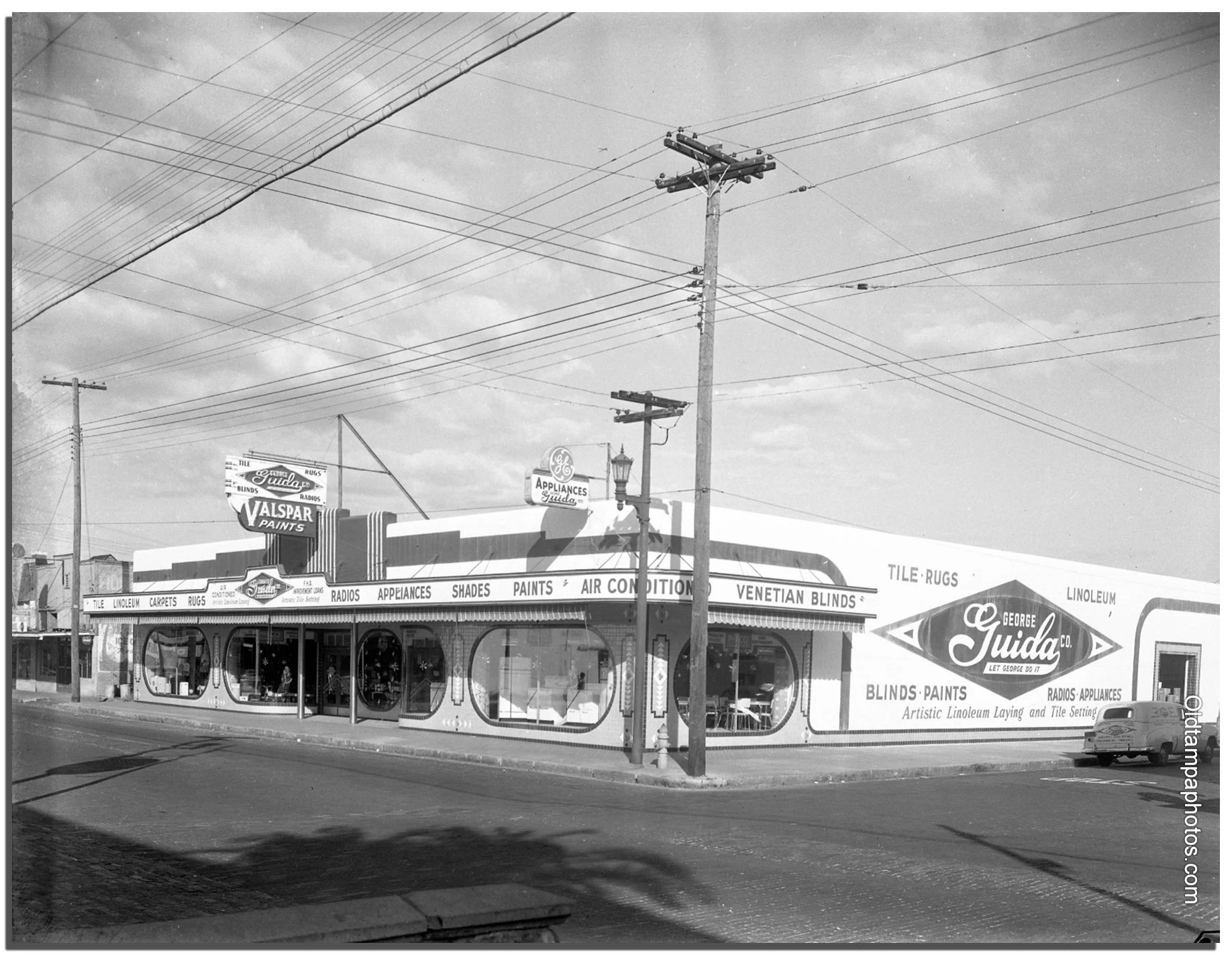 In 1941, George Guida and his wife Palmira Priede took a chance on a floor covering and Venetian blinds store. Guida opened his original store at 720 LaSalle close to the Fortune Street bridge, starting with a few rolls of linoleum. In 1945, he moved to a larger space at 1715 North Howard Ave. in the old West Tampa post office building. In 1948, he moved to this location at 1801 North Howard Ave., which afforded him more than 10,000 sq. ft. of merchandising space, and named the business George Guida & Sons Home Furnishings and Decorating. His business expanded into selling televisions, major appliances, air-conditioning, and paint. The store also operated a complete service department for major appliances and floor coverings.